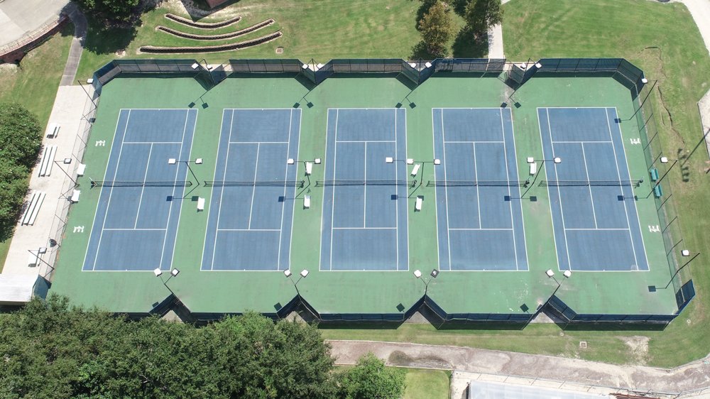 The tennis courts at Episcopal are five professionally coated hard courts that are home to the Episcopal tennis team and physical education classes. The courts were strategically built and designed to sit lower than the surrounding green space so that the space around the courts serves as a natural grandstand for the large number of tennis matches hosted at Episcopal.