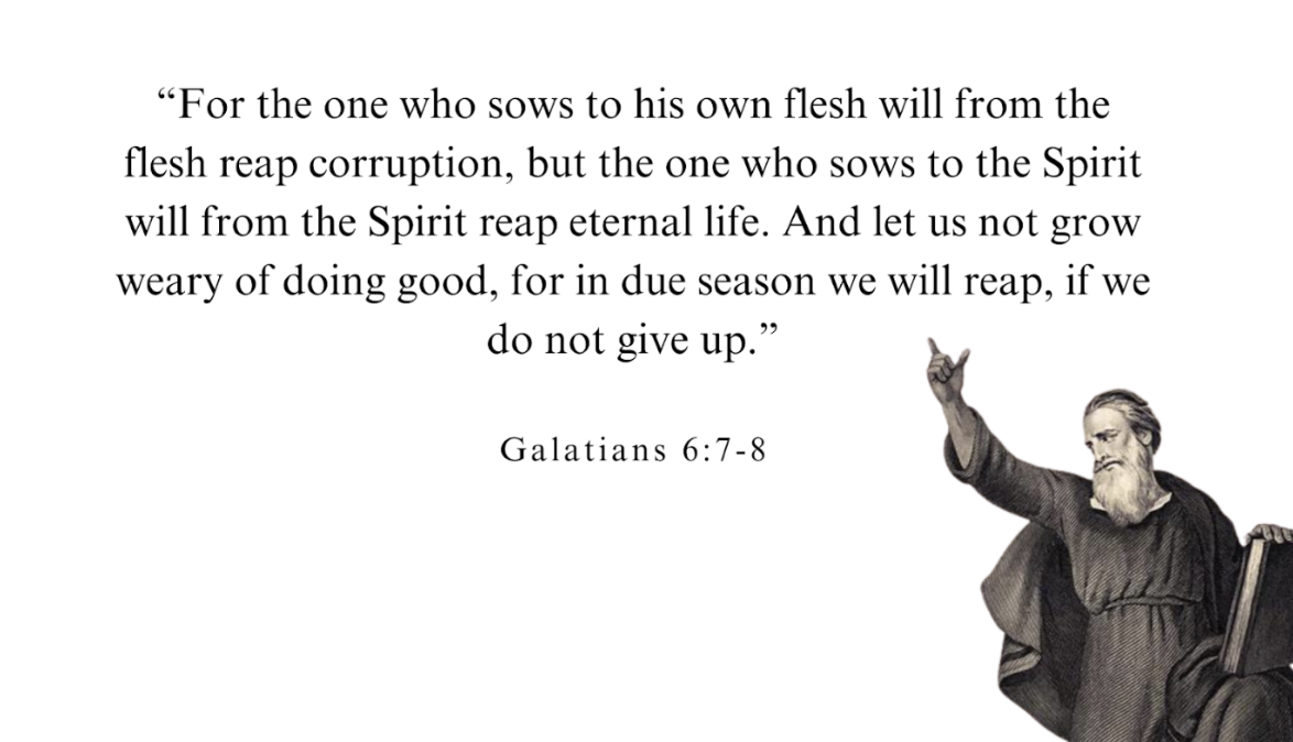 Now when Paul explained this to the Galatians, he meant it very literally. First century agriculture consisted of laborious planting seasons, working hard to ensure the health of crops and livestock throughout the year, and harvesting and storing the food in order to sustain entire societies. If they wanted to eat, they had to decide early on that they were going to plant those seeds and maintain them. They couldn’t expect to have food in the winter if they never did anything to prepare that result.
