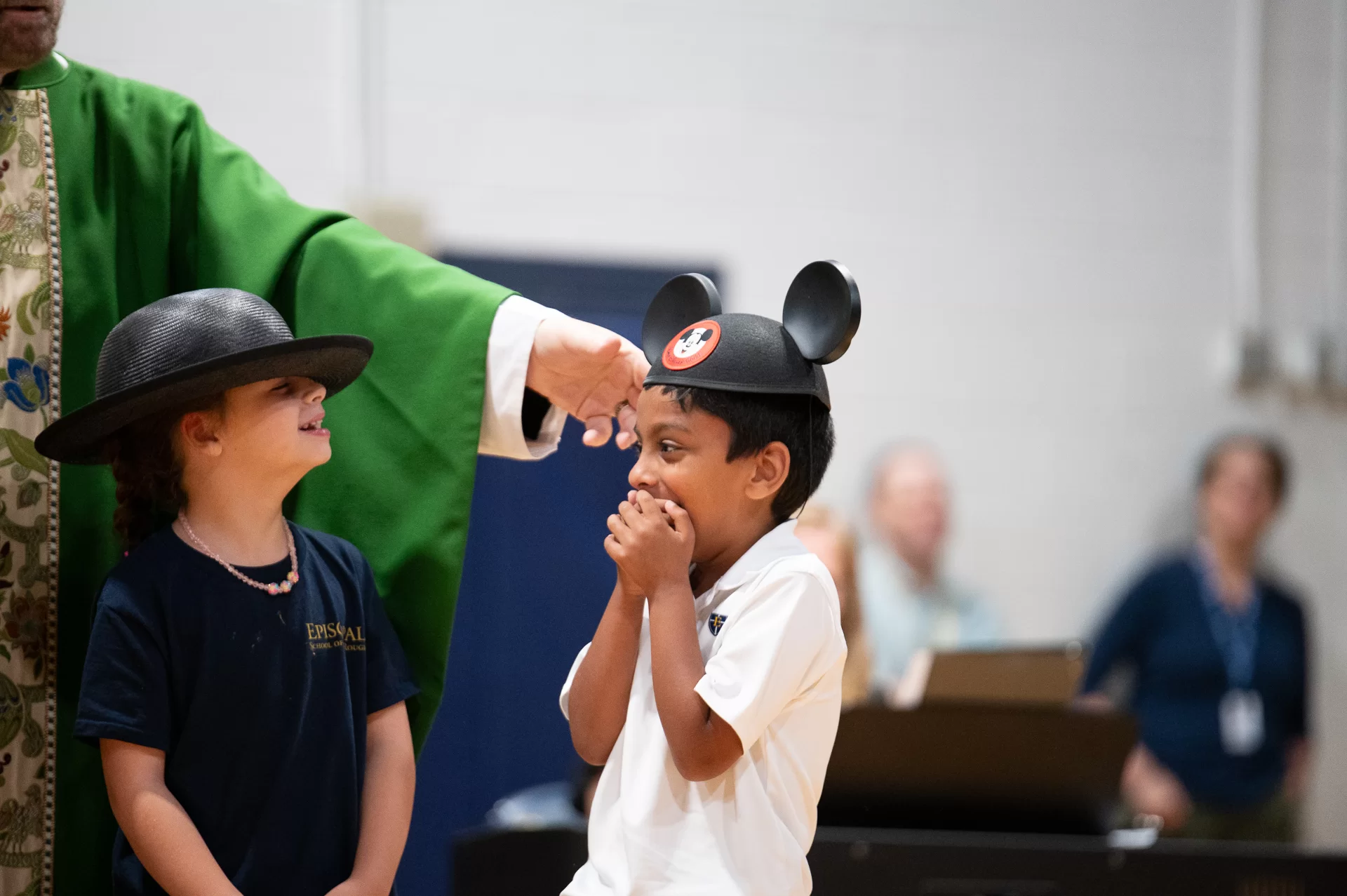 With the help of our brave first graders, I shared my liturgical headgear customs with our gathered community at All School Eucharist. I introduced the Zucchetto, a Biretta, and a Saturno, along with mouse ears from Disney World, to show that there are other things yet to be seen about what may go on this priest’s head. It was a delightful way to answer the curiosity that had been circulating.