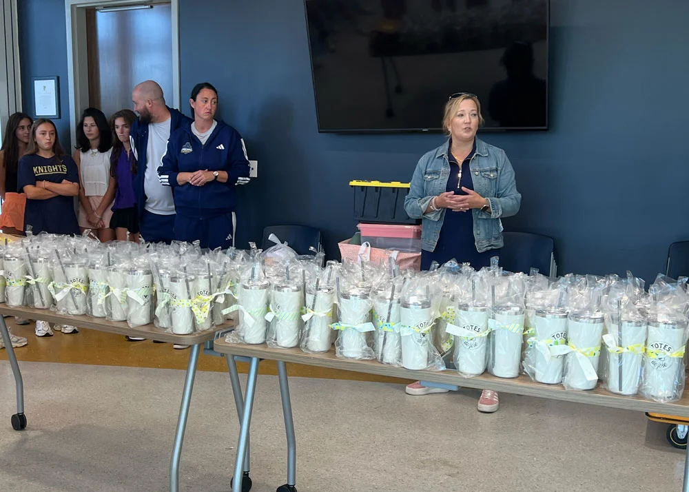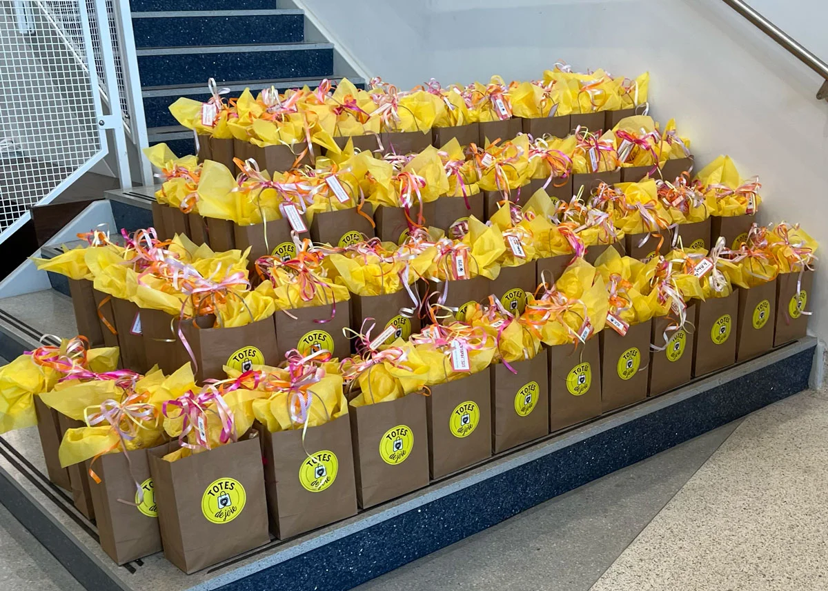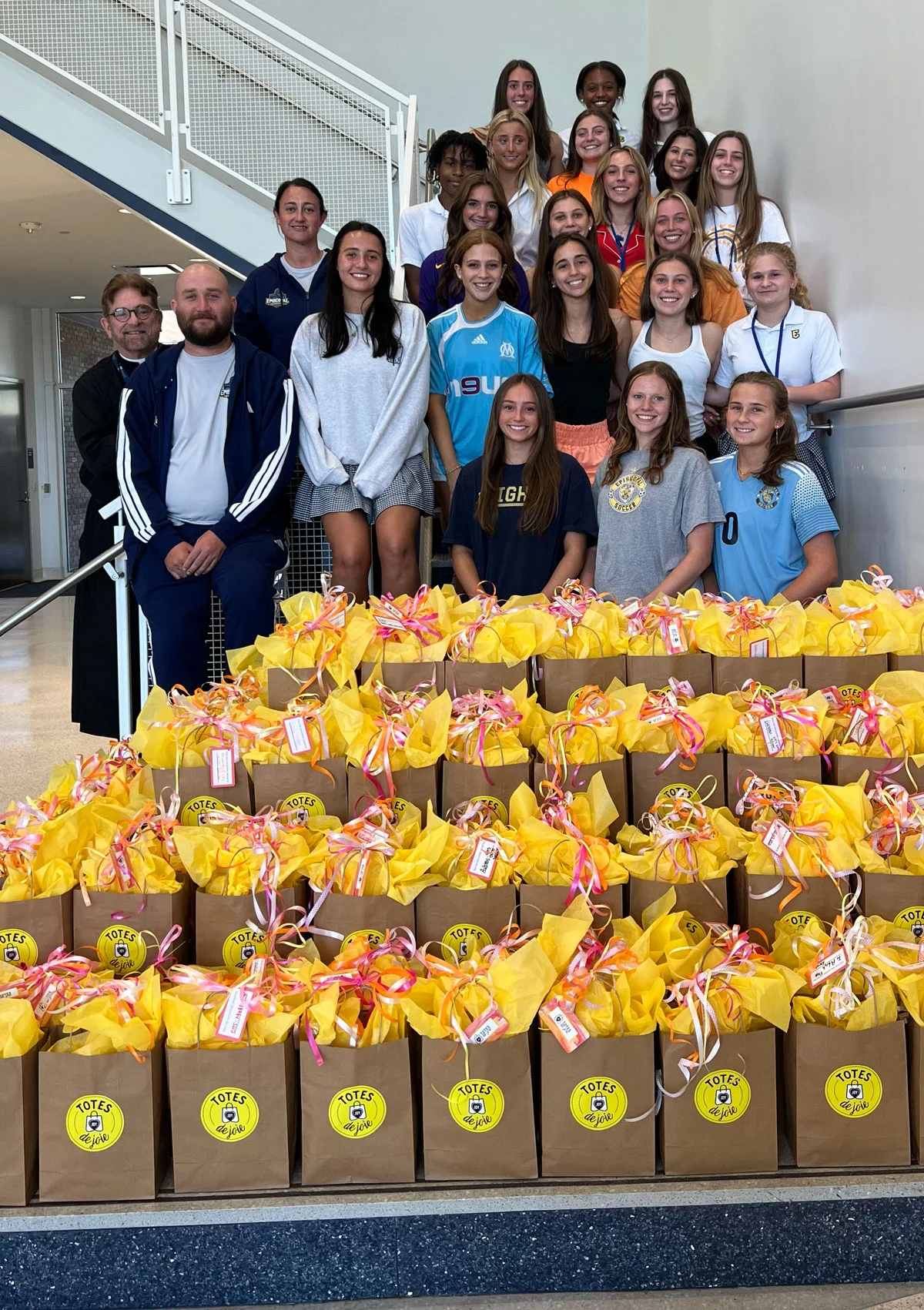 The love letter story continued when the Knights girls soccer team recently participated in their annual team service project. Each year, the girls fill Totes de Joie bags with treats and gifts for area patients, and this year’s bags included the cards from their younger classmates. Smith was thrilled for her students to have such a connection with their older friends.