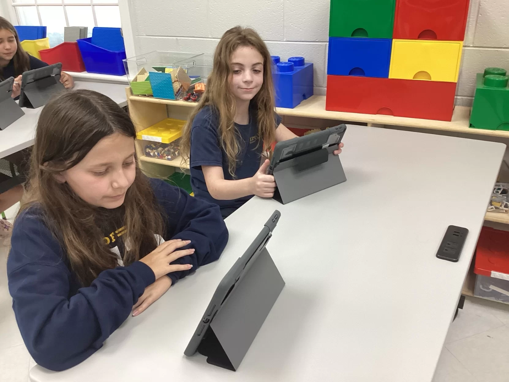 As students develop technical skills, Hill introduces new terminology and says students are already incorporating the terms into the class. “They’re learning a language they didn’t know before,” she says. One example of a term these fifth graders have learned is the Boolean value, which represents a true or false statement. In addition, Hill uses the class to introduce another helpful skill – typing.