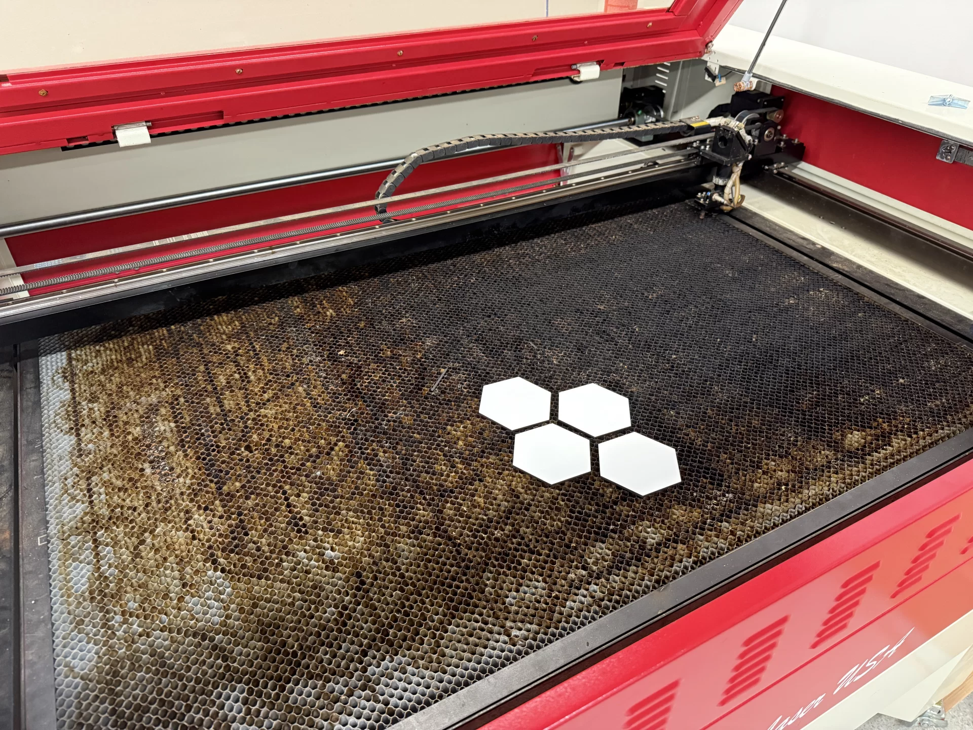 “FRAME is a club for students interested in a variety of things from engineering, to coding, to robotics, to building interesting things,” says Upper School science teacher and FRAME advisor Dr. Jeff McLean. “FRAME is an acronym for Fabrication, Robotics, Automation, Maker-space, Engineering.” The hexagon planners asked McLean if their vision could be achieved in the Episcopal Fab Shop. “I thought it would be a great introductory project for students in the club,” says McLean. Using the shop’s Rabbit Laser Cutter, club members Kate Lyons, Abigail Landry, Ainsley Ebey, Tripp Veillon and Caden Duff produced the new learning tool.