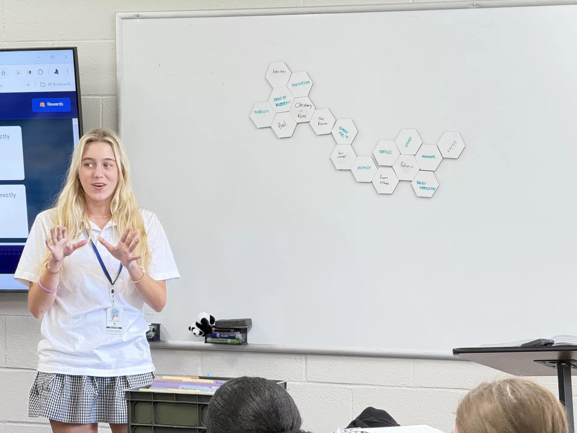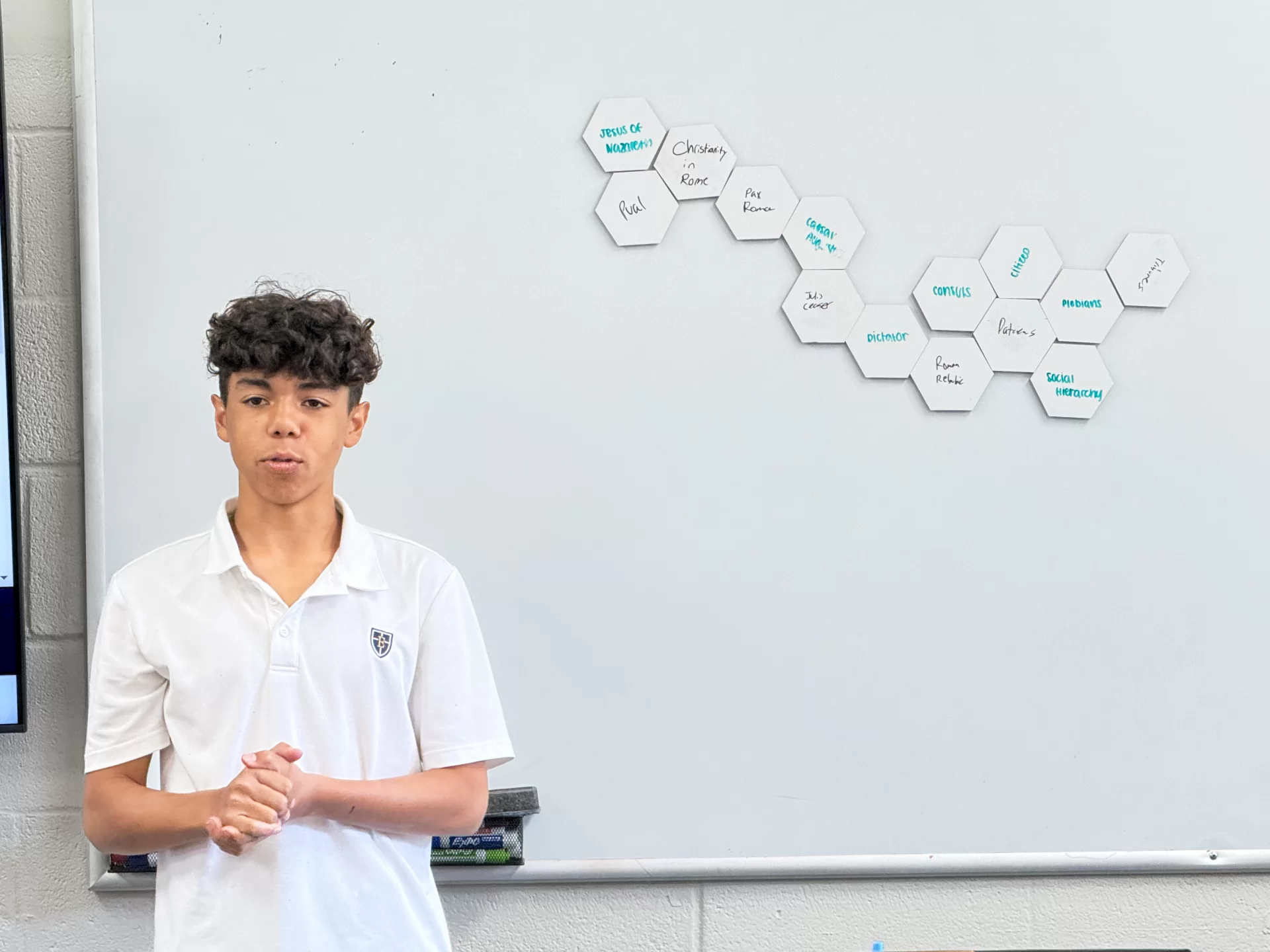When Upper School History teacher Jenn Vu requested a brainstorming session with Academic Technology Coordinator Brandi Bergeron and Library Director Tiffany Whitehead, she wanted ideas on how to digitize a student review assignment. Vu joined the meeting with a stack of hand-cut paper hexagons. “This really began as a way to review with my World History students,” she recalls. “On the written portion of the test and really with just any type of writing that they do I wanted them to focus not just on the single term but on how the terms actually connect with one another.” Vu planned to write terms on the hexagons and ask students to align the shapes based on their connections to each other. Digitizing the shapes would allow for easier repurposing.