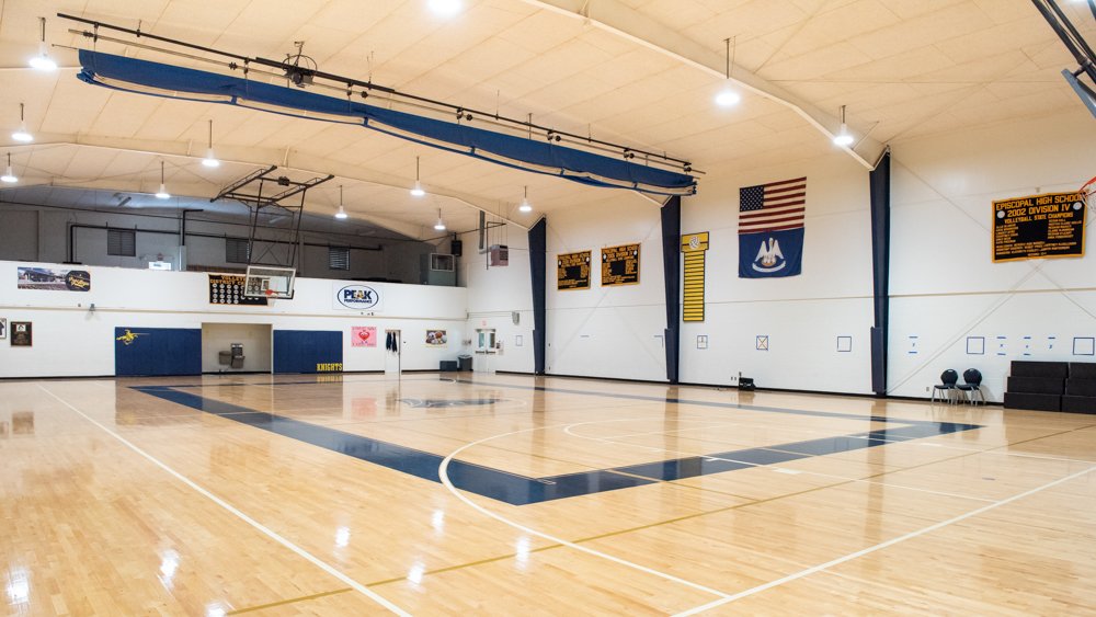 The Phillips Gym is a 16,679 square foot facility that is home primarily to physical education, girls volleyball, and boys wrestling. The facility was renovated with the grace of the Phillips Family in memory of their daughter and Episcopal student athlete, Annslee Laura Phillips ‘00. The renovated facility was improved to house dual locker rooms, a mezzanine currently home to the Knights wrestling team, coaches’ offices, and the main competition court for our girls volleyball team.