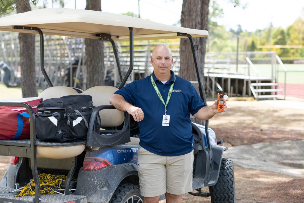 As an athletic trainer, Mannina’s job is also team weather forecaster. Before athletes begin practice, Mannina can be found outdoors holding an orange wet bulb globe temperature calculator. He’s been using such a device for decades to calculate a reading that takes into consideration the temperature, humidity, wind speed, cloud cover and sun angle. Combined, this data provides a more accurate understanding of the conditions than temperature or heat index alone. The NATA established activity guidelines regarding wet bulb readings, and based on the numbers, athletic trainers determine the equipment players wear, how many breaks are needed and the length of practice. Recently, the wet bulb globe reading entered the hottest zone, requiring players in all sports to practice indoors. Flexible and resilient, coaches and athletes adjusted quickly and moved workouts into the Episcopal gyms.