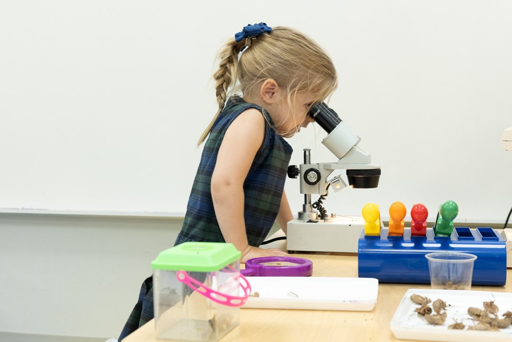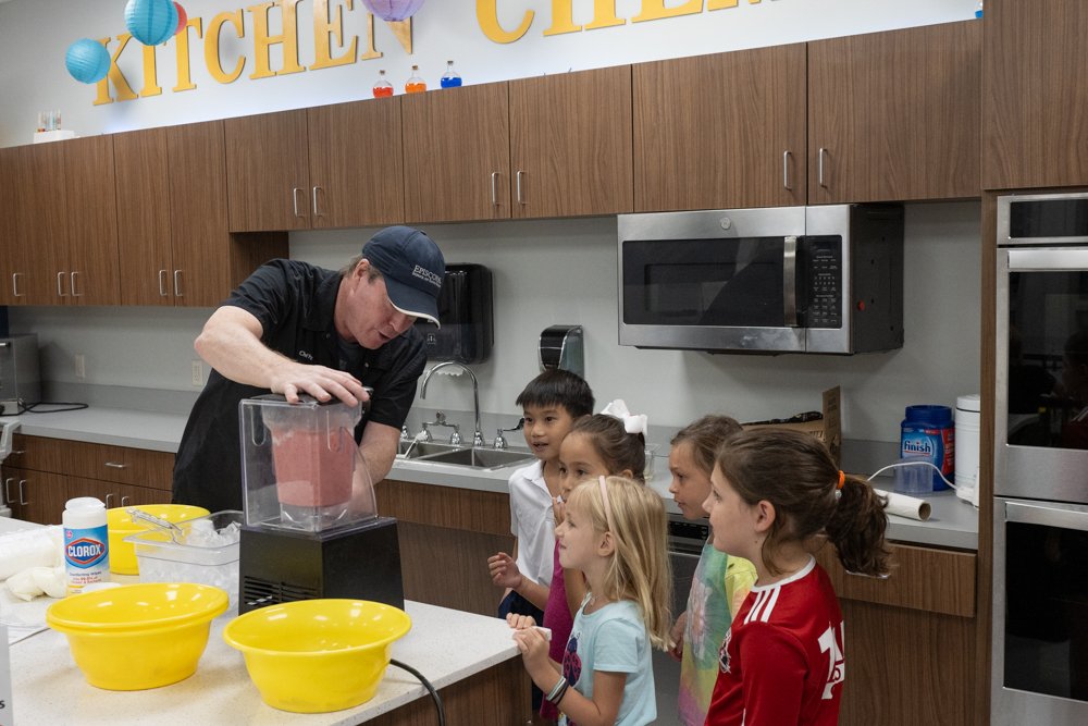 Starting in Episcopal’s early childhood program, students are provided rich and meaningful opportunities. These opportunities encourage discovery through play including manipulating, exploring, making predictions, asking questions, and using creativity to solve simple problems. Each year, students build on prior knowledge to expand their learning. For example, our youngest PreK-3 Knights explore their five senses by cooking a Thanksgiving feast. PreK-4 investigates the sense of sight by mixing colors to explore prisms and rainbows while learning about colors and light. Kindergarten students spend several weeks learning about their own five senses in comparison to how insects and other animals use their senses. Many of their questions are answered through explorations and investigations including taste testing, smelling potions, nature walks, observations and predictions.