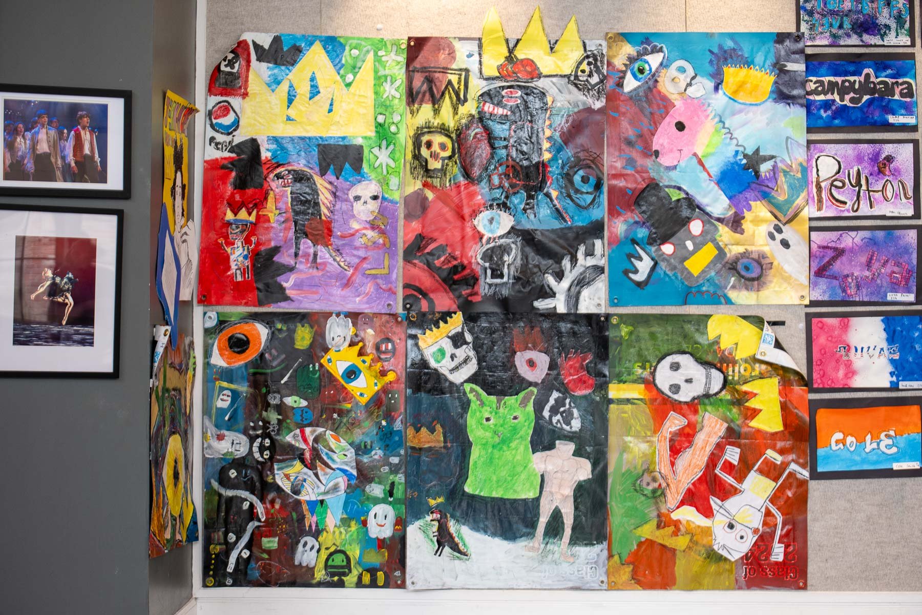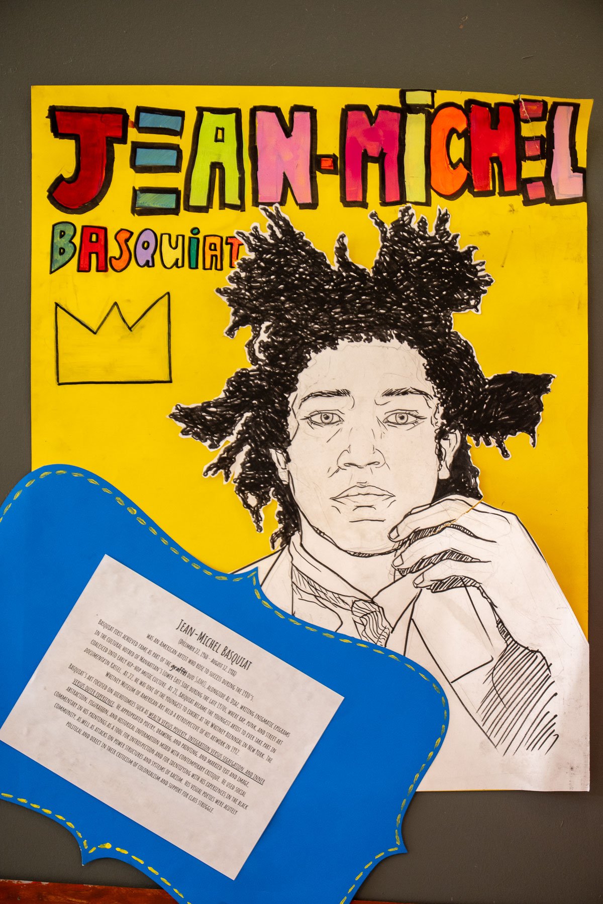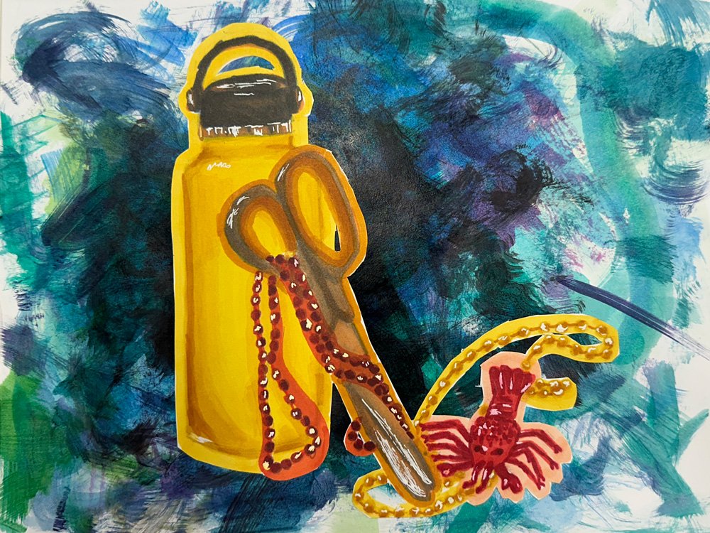 Hallock also wants students to understand that art is a conversation, and while not everyone will be an artist, it is beneficial to have an understanding of art and artists moving forward. Spring Art Show visitors can expect to see works influenced by the conversations students have had about artists Jean-Michel Basquiat and Hilma af Klint. Basquiat painted marginalized communities and splintered anatomy, and Hilma af Klint was a pioneer in abstract art. In addition, students were tasked with creating works that use Hallock’s three rules of good composition – go off the edge of the page, exaggerate scale and overlap.