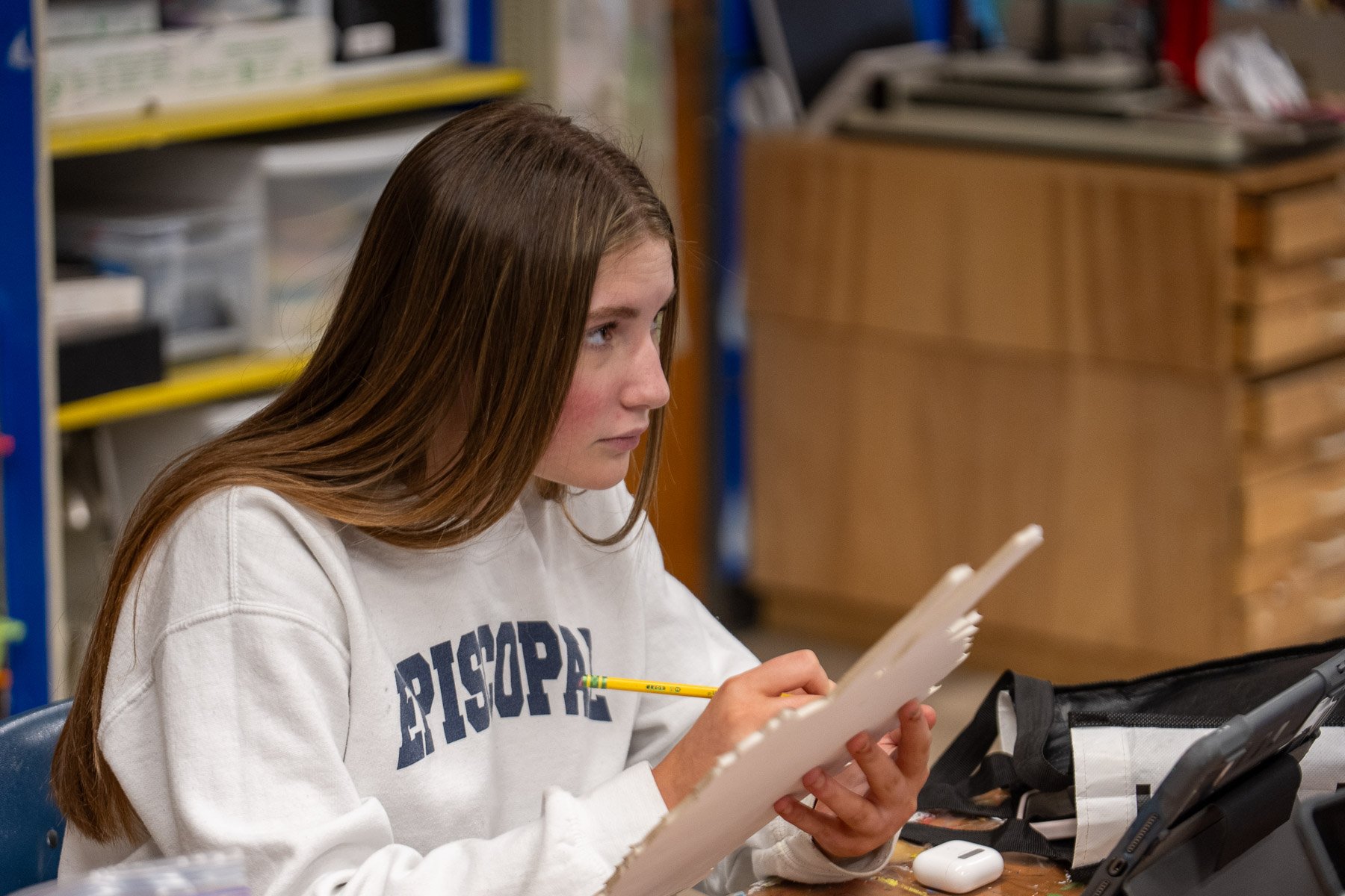 Both art teachers remember fondly their first transformative brush with art. Koprowski-Stout smiles as she remembers winning her first big art award in kindergarten. “I wrote a book and illustrated it,” she says. Her first art show was also in elementary school, and it made an impression. “I loved it,” she says. Hallock is equally moved when thinking of her first big art moment. In elementary school, she visited the Indianapolis Museum of Art and was in awe of a stained-glass piece on display. “It changed my life,” she says. Hallock went on to have her art displayed in elementary school and earned the senior art superlative her graduating year. The first art piece she sold was a book she created based on growing up in her backyard. As the teachers recall these profound memories, it’s easy to imagine that an Episcopal art student could have a similar experience when seeing their own work celebrated and displayed.