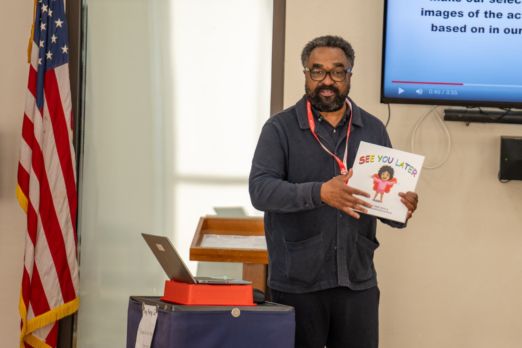 Author Terrance Sanders-Smith with Lower School students.