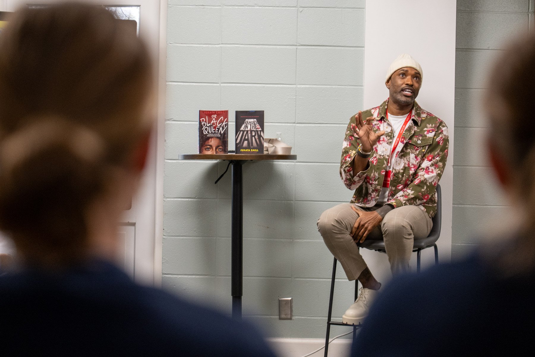 Author Jumata Emill with Upper School students.