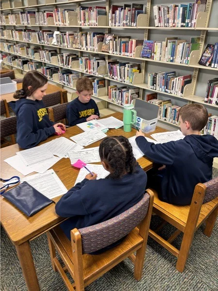 Academic Resource Center (ARC) Director Katie Sutcliffe recently huddled in Aldrich Library with ARC Fellows to prepare for some special guest visits. The Upper School Fellows assisted fifth grade classmates with a Black History Month-inspired thesis in a project that introduced Lower School students to the ARC for the first time. Fellows work with Middle and Upper School students, so the effort required a little planning.