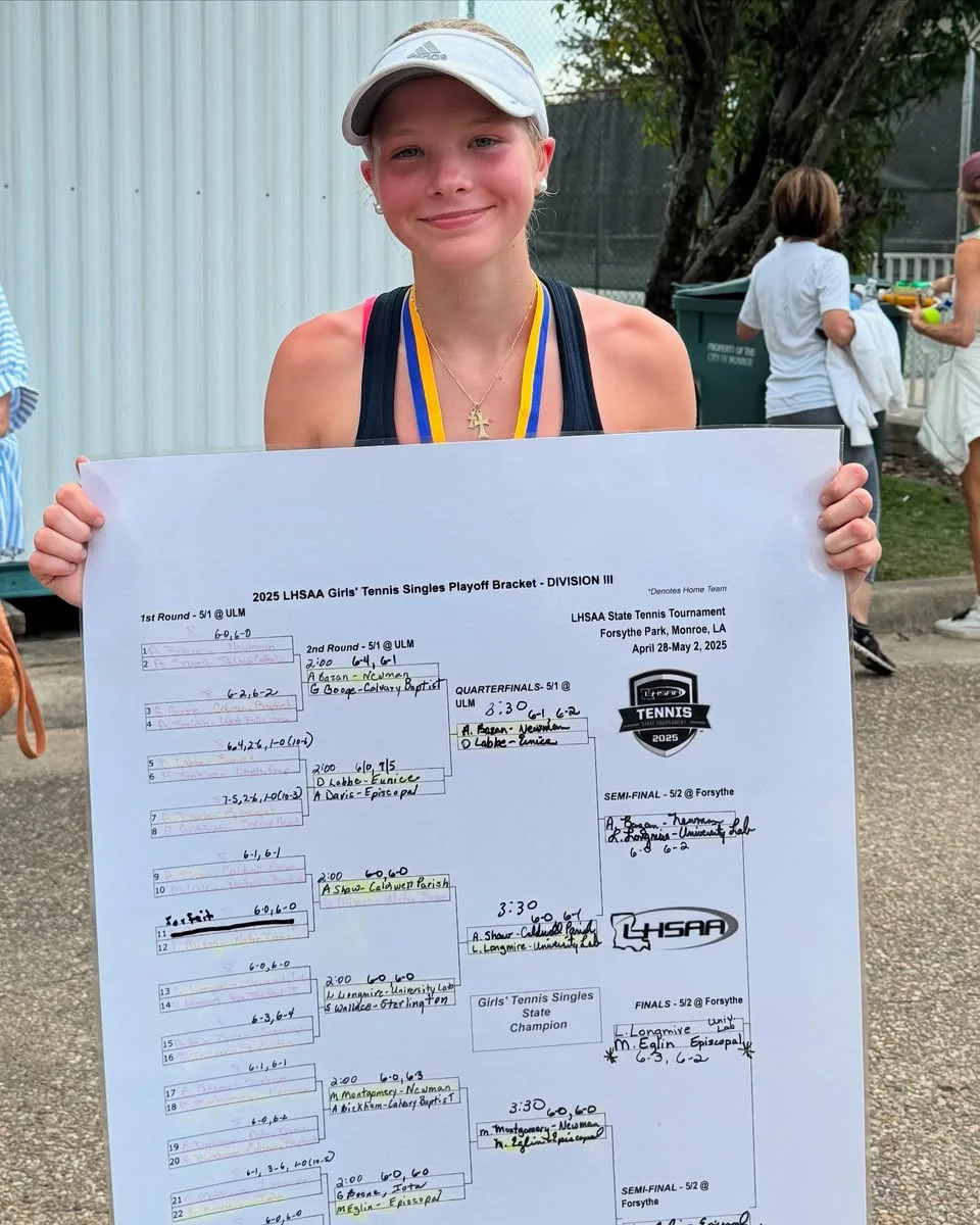 Congratulations to Merrill Eglin, the Division III State Champion in singles! In addition, the girls team finished third overall in the state, with Vivi Bennett and Leighton Boyce reaching the quarterfinals.