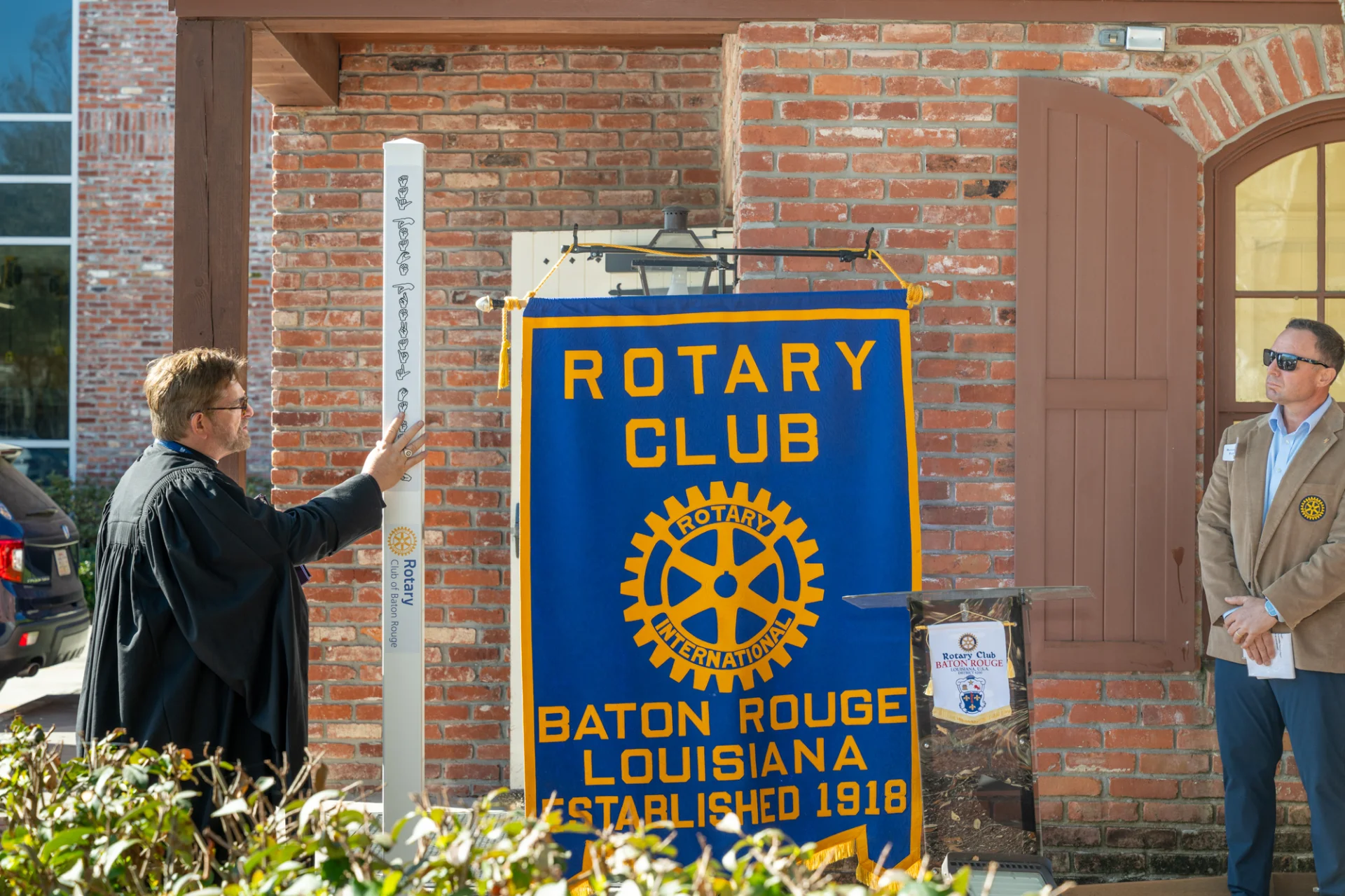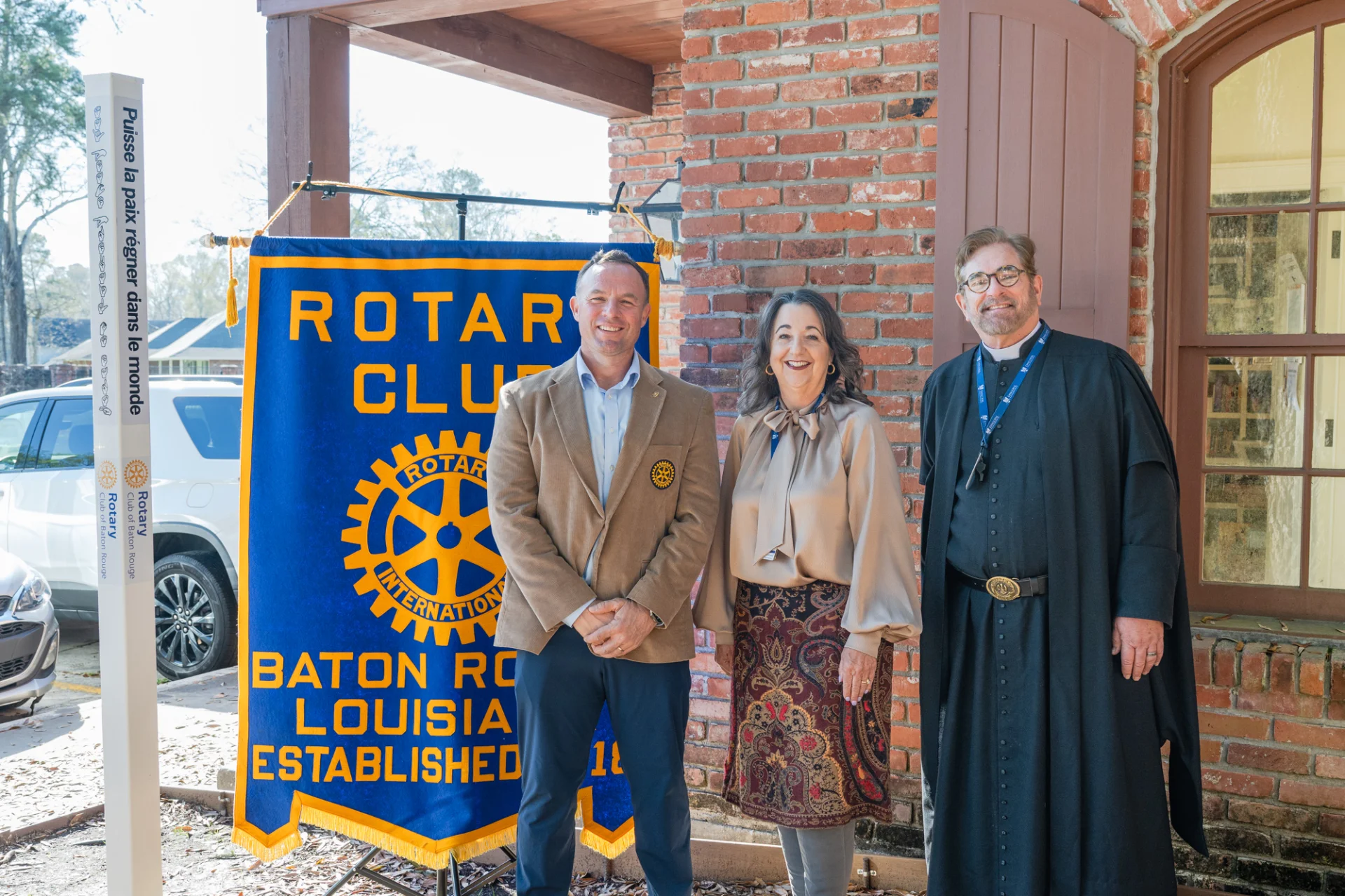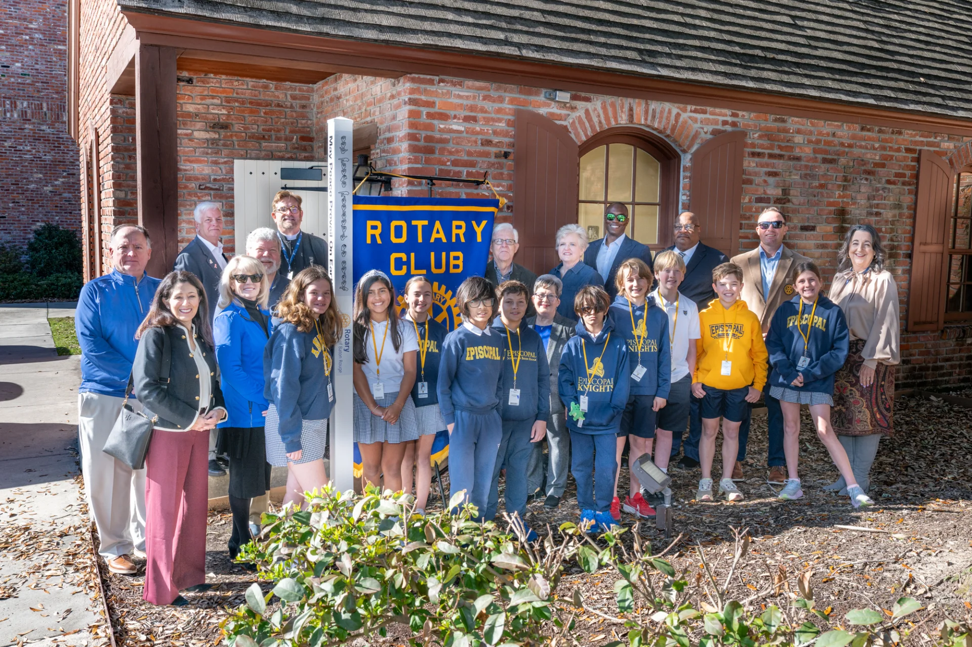 Members of the Baton Rouge Rotary Club joined Episcopal Middle School students and school administrators for the blessing of the Episcopal Peace Pole in the school’s Memorial Garden. Father Patrick Edwards blessed the pole, which was donated by the Rotary Club and is the first Peace Pole in the Baton Rouge Rotary Club’s history. “May Peace Prevail on Earth” is inscribed on the pole in English, French, Spanish and American Sign Language.