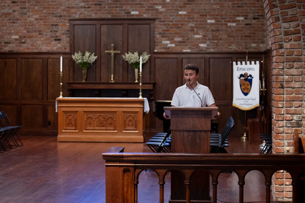 Honor Council President John Luke Boagni reflected on the Episcopal Honor Code at Upper School Convocation. He reminded classmates of the importance of respect and accountability and how the Honor Code inspires the Episcopal community to greatness.