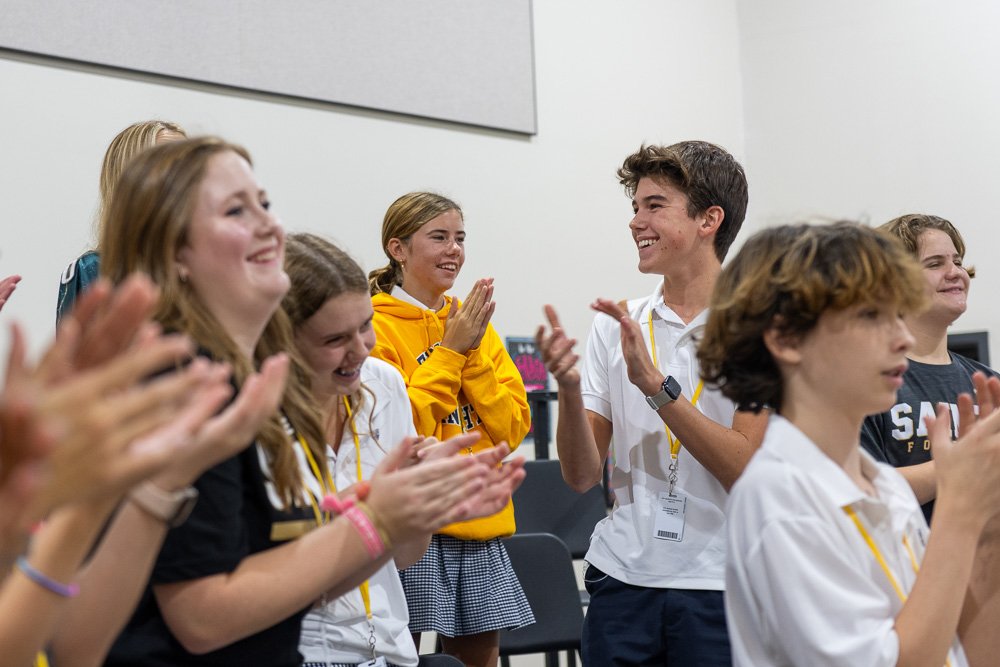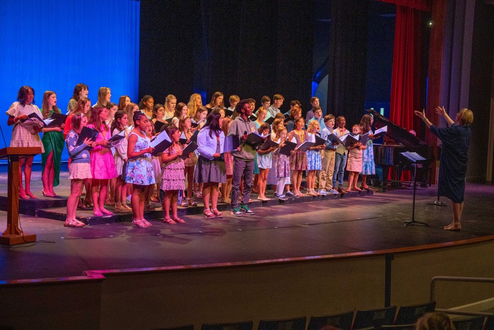 The Select Choir’s success builds upon a culture of learning. Poynot prioritizes music literacy with all three choirs. For example, in sixth grade, students begin training their brains for music as they learn about musical rhythms and symbols. The curriculum builds as they advance to seventh grade, where they begin training their ears for music through Solfege and dynamics. Music class is filled with games, songs and TLC. “TLC is something I learned a long time ago that I strive for in rehearsals: A Tear, A Laugh, and a Chill Bump,” says Poynot. In the case of Squire Choir, you could also include cuteness.
