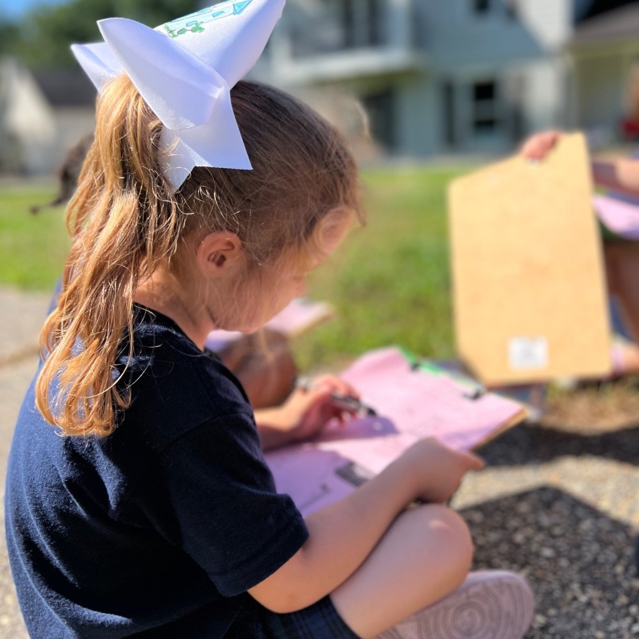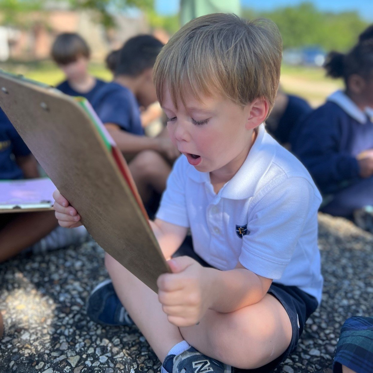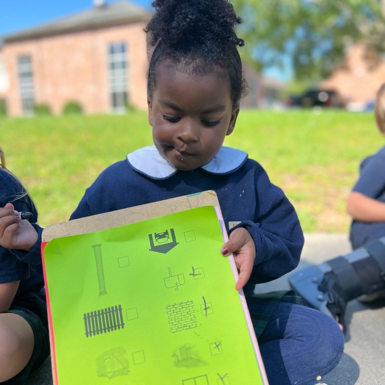 As part of their lesson on homes and buildings, the littlest Knights conducted a field study along Chapelwood Drive. Students pointed out the similarities and differences between houses on the block and recorded their observations on a checklist.
