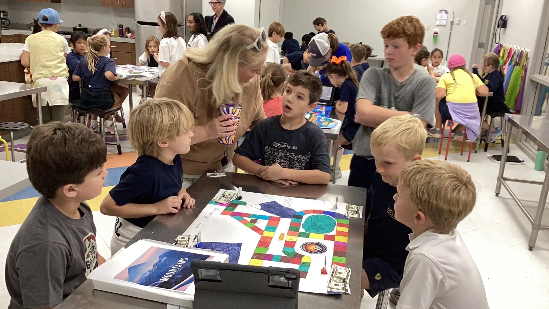 That sense of community and joy of learning is on display as each grade level celebrates the completion of a unit. Recently, first graders finished the “Healthy Selves” unit with the annual biathlon, and fourth graders wrapped up the National Parks unit by challenging families and classmates to play board games they created. These activities reinforce the importance of learning and boost students’ confidence surrounding their new knowledge.