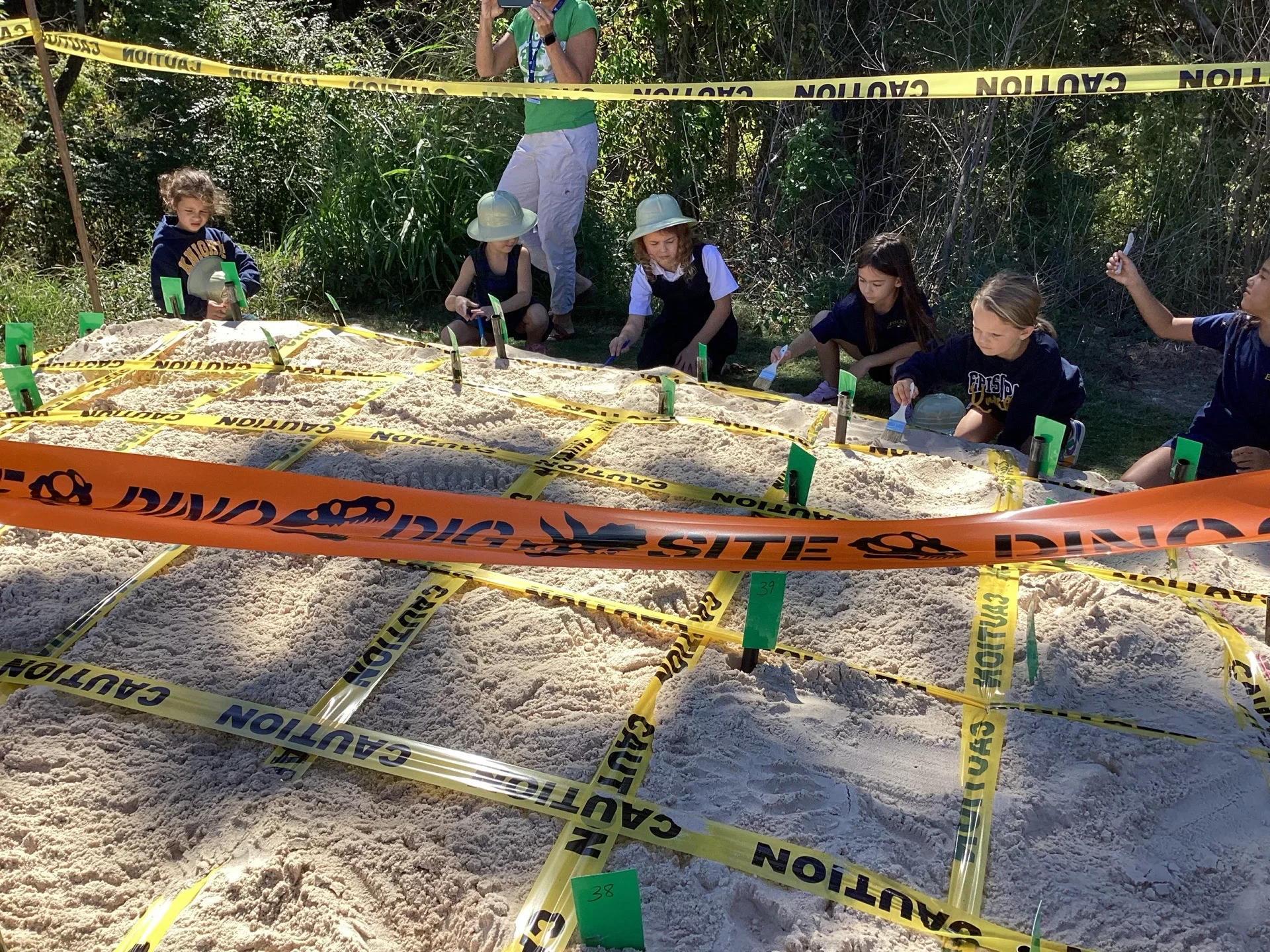 The dinos are here! First graders have embarked on the yearly paleontology project-based learning unit with much excitement. This comprehensive unit features a fossil dig, constructing dinosaurs in the QUEST Center in Foster Hall, excavating chocolate chip cookie “fossils” and much more. As most families know, dinosaurs are a popular topic in Lower School, and this unit unlocks countless learning opportunities for students.