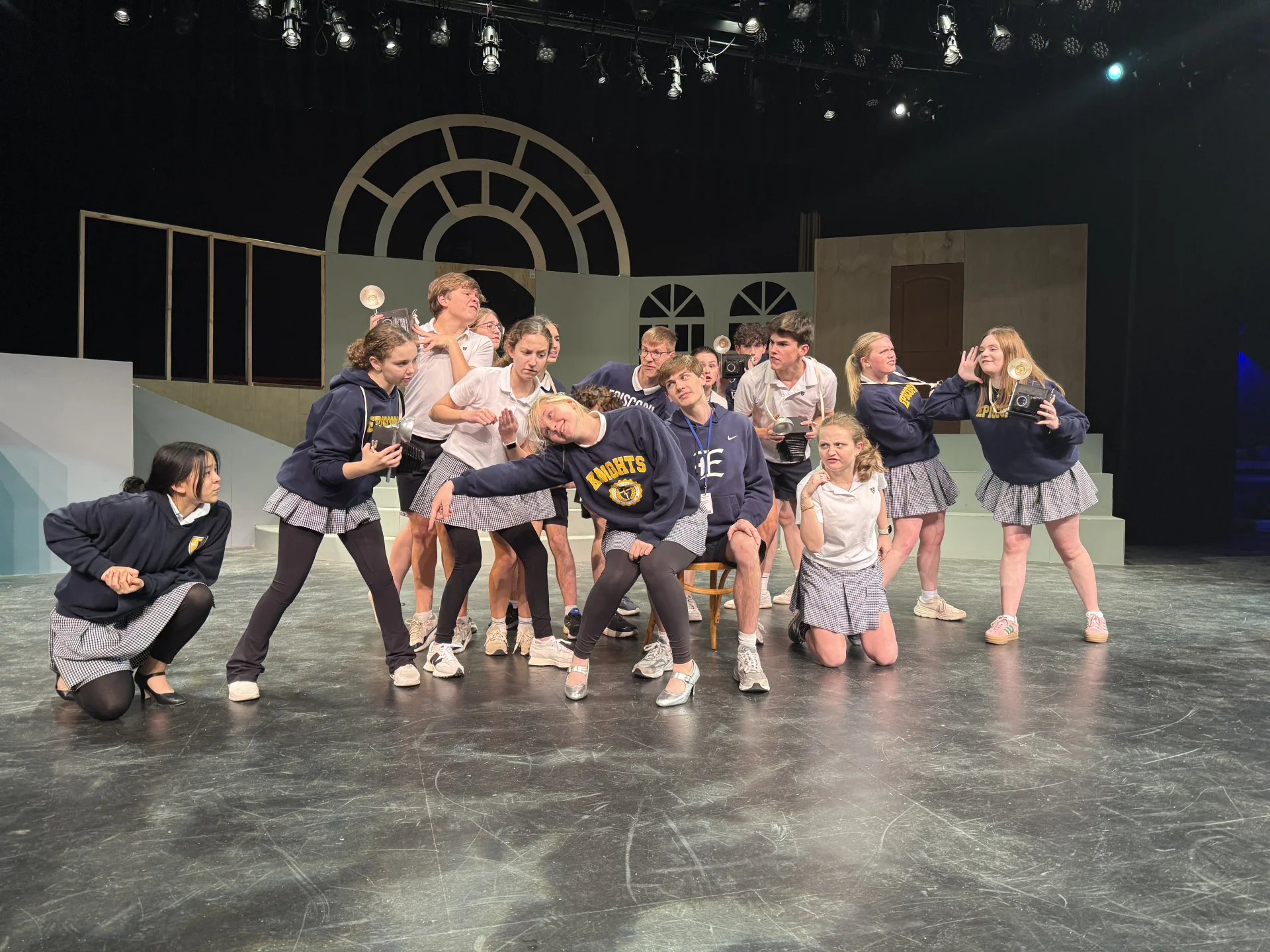 Fifty-two Middle and Upper School students will dazzle audiences with the play that McGill says feels similar to “Chicago” the movie. McGill is thrilled that more than a 1/3 of the student actors are new to theater. “A bunch of seniors are doing the show for the first time,” she says. She says having new performers creates new friendships and opportunities for students to learn from one another. “They’re learning that everyone has a strength,” says McGill. “This has been such a good experience for all of them.”