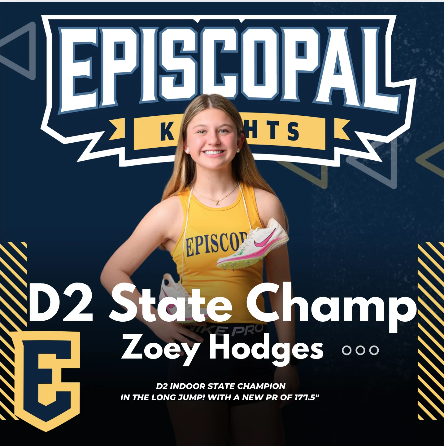 This season we witnessed several notable team and individual achievements, particularly the State Championships of the Girls Swim and Boys Cross Country Teams and most recently the Boys Powerlifting Team. Individually, Caroline Watson entered the Episcopal record books scoring 1000 career points in Girls Basketball and Zoey Hodges won the Long Jump Indoor State Championship. Furthermore, eight Knights have pledged to continue their athletic pursuits at the collegiate level. Many Knights demonstrated unwavering dedication, teamwork, and commitment to excellence in their athletic endeavors and to each other this year. We are thrilled to celebrate all of their accomplishments!