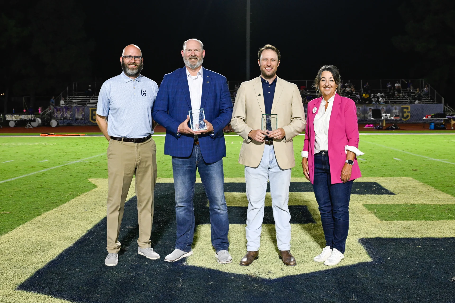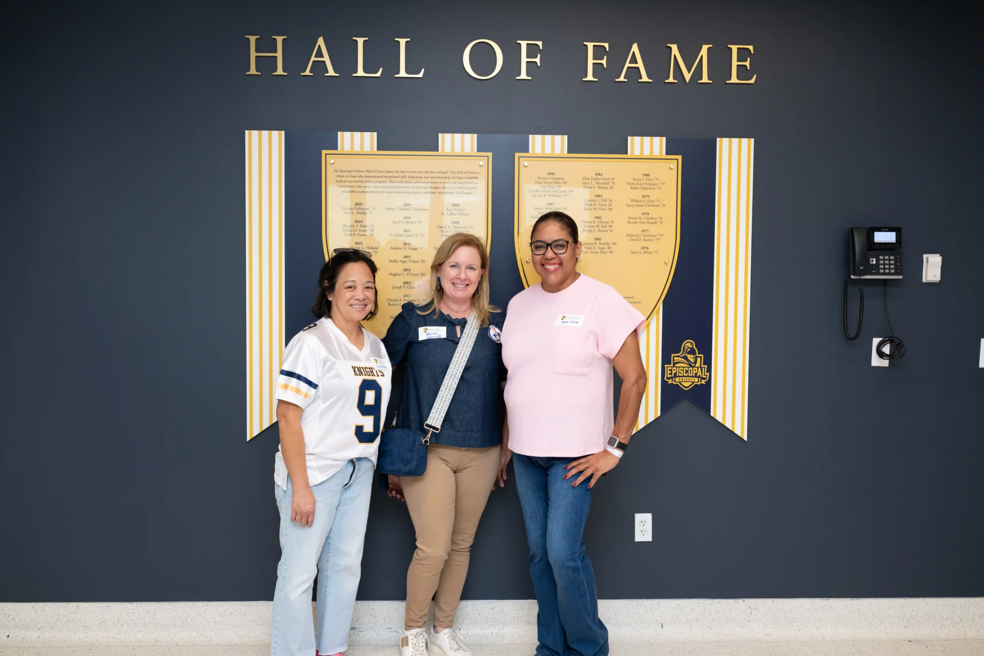 The festivities culminated Friday evening as our Episcopal Knights took on Ascension Catholic in a Friday Knight Light football matchup. The evening began with a pre-game reception in the Graves Family Fieldhouse where classmates, family and our Episcopal community had the opportunity to visit, reminisce and congratulate both inductees. Additionally, during the pre-game reception the new Athletic Hall of Fame display was revealed. This display highlights all of our Athletic Hall of Fame inductees throughout the years. Episcopal’s tradition runs deep, and it was important to us that both our current community and alumni have the opportunity to see and celebrate the individuals who laid the foundation for what we are today. We’re thrilled to have this display in a space that regularly brings people together—whether it’s alumni events, team meetings, shared meals, or campus tours for prospective students. This display would not have been possible without the tremendous support of Episcopal’s Squires Organization. We would also like to thank Beverly Hise and her family for their commitment to wanting to see the history of Episcopal preserved and past Athletic Director Randy Richard for the vision to help this recognition take shape over the years.